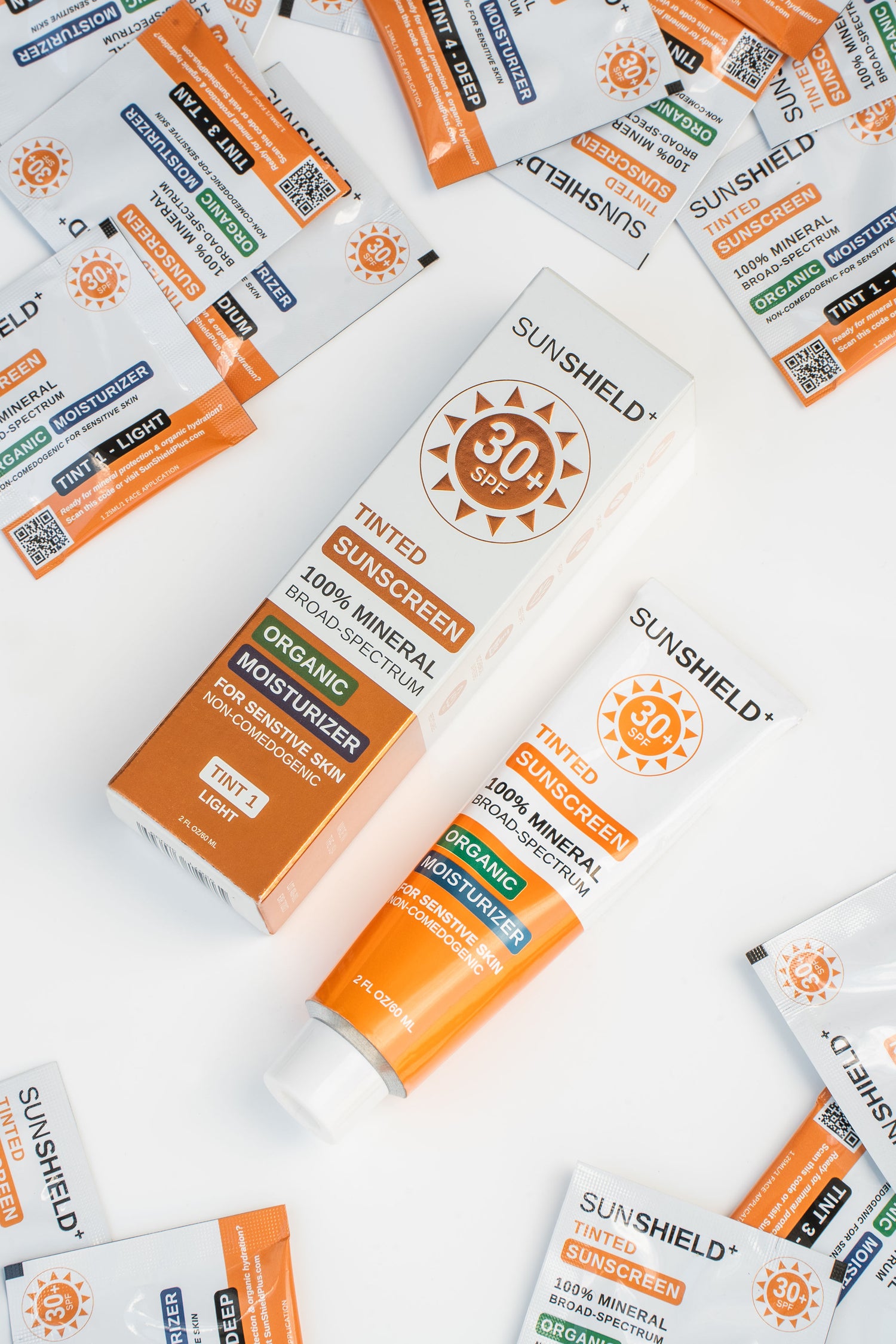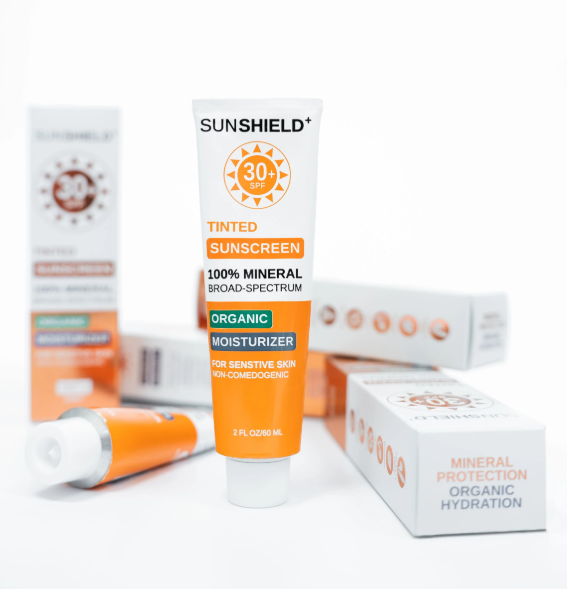 SunShield+ is a 3-in-1 tinted sunscreen, moisturizer, and skin beautifier with organic, natural, non-GMO, edible-grade ingredients. It provides HEV Blue Light Defense, blends invisibly, evens skin tone, covers redness, and enhances your natural look. Made in the USA by a small business, it features reef-safe, cruelty-free, hypoallergenic, and sensitive skin-safe formulas in recyclable aluminumΒ packaging.