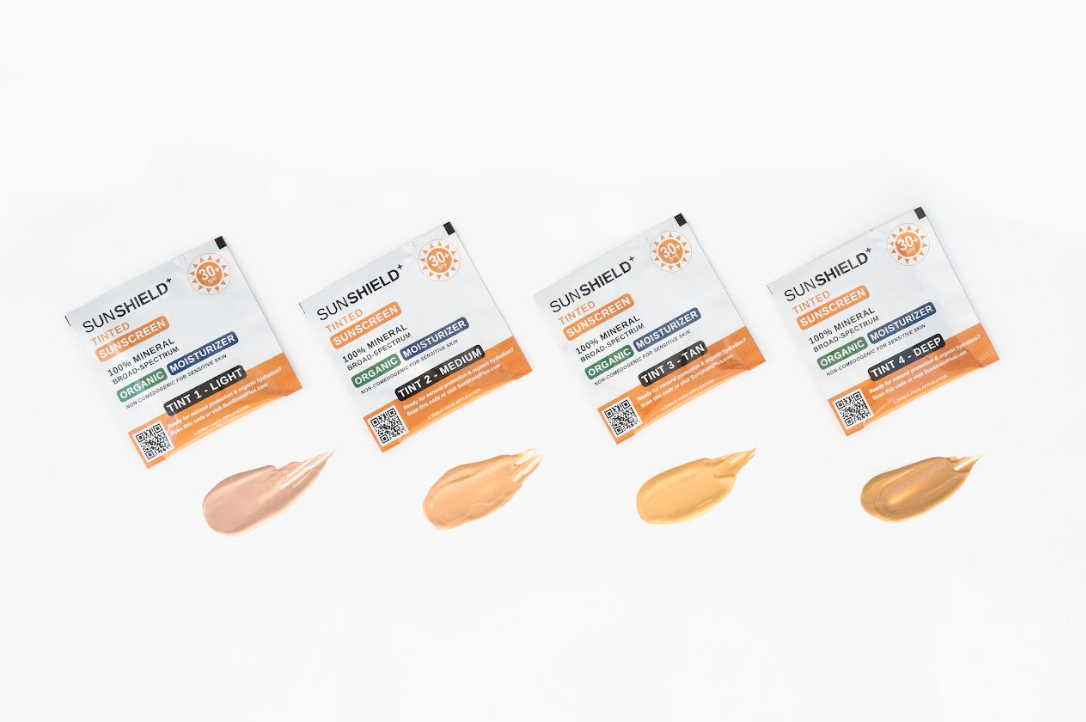 SunShield+ is a 3-in-1 tinted sunscreen, moisturizer, and skin beautifier with organic, natural, non-GMO, edible-grade ingredients. It provides HEV Blue Light Defense, blends invisibly, evens skin tone, covers redness, and enhances your natural look. Made in the USA by a small business, it features reef-safe, cruelty-free, hypoallergenic, and sensitive skin-safe formulas in recyclable aluminumΒ packaging.